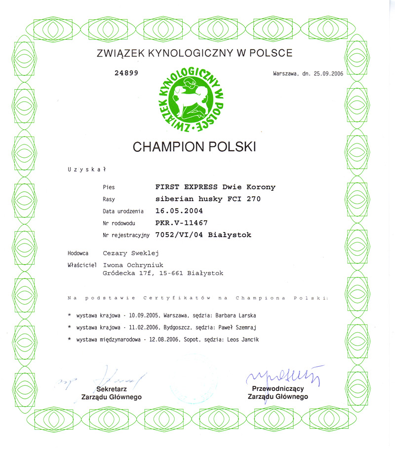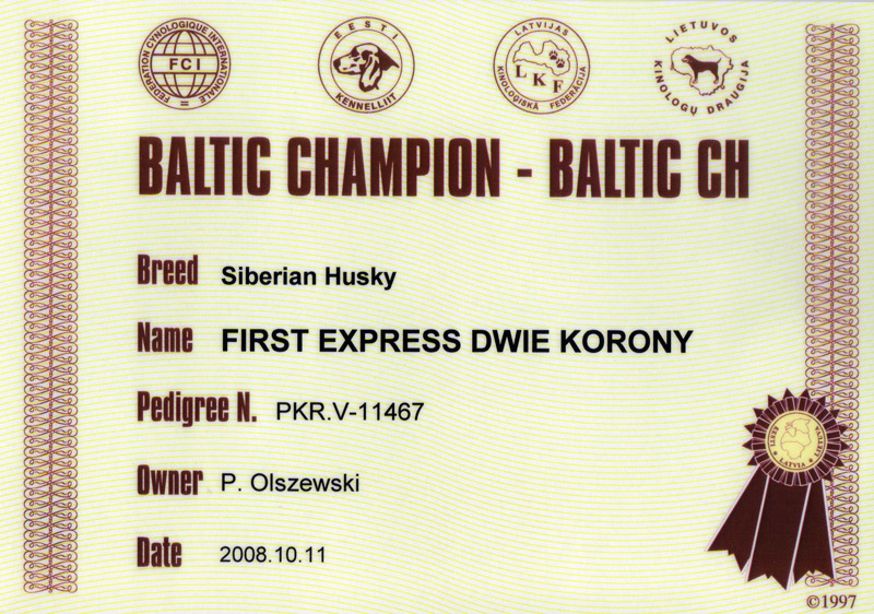 Champion Polski  Champion Estonii  Champion Łotwy  Champion Litwy