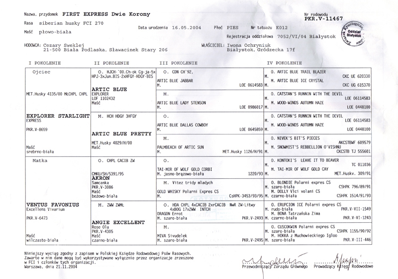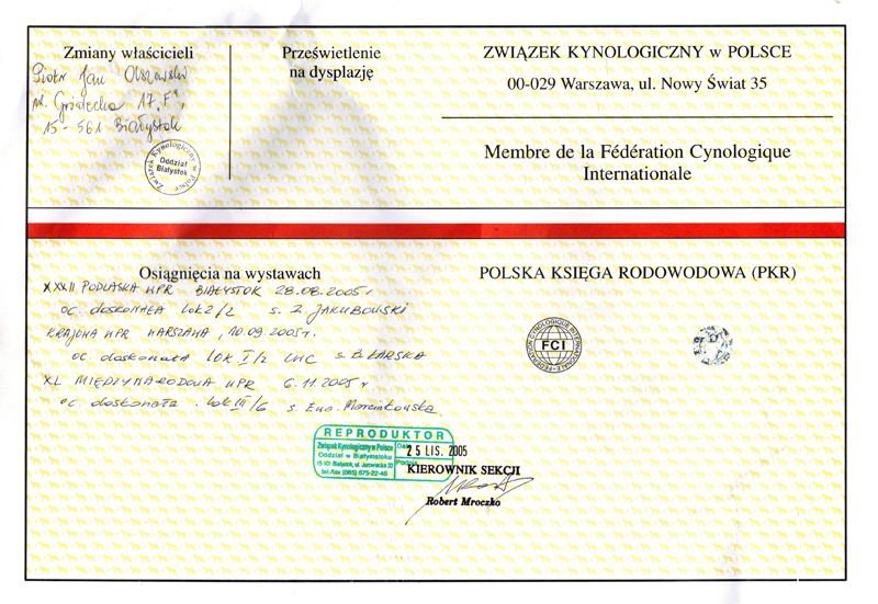 Rodowód str. 1  Rodowód str. 2